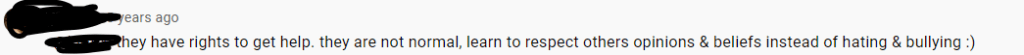 I think not. My goal from here on out is to remain kind, but objectively honest. And under no circumstances will I respect the belief that we’re “not normal” and should “seek help” (aka conversion therapy).