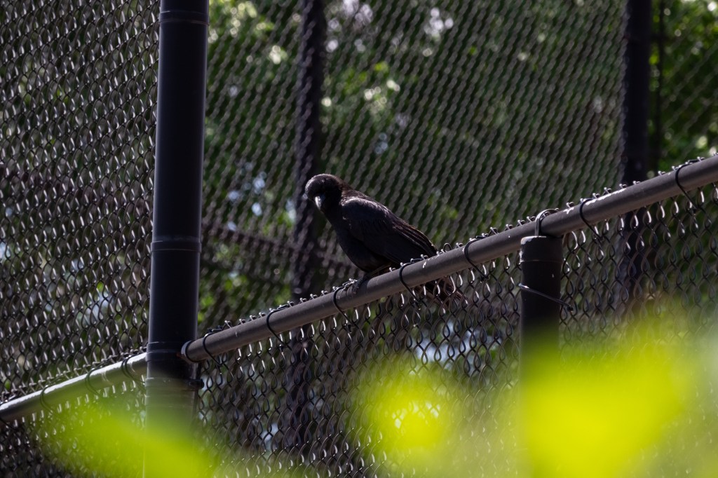 Females, on the other hand, have been oddly friendly with me. While the males rarely linger for a picture, the females have willfully posed for me on the chainlink fences in our park, as seen below: