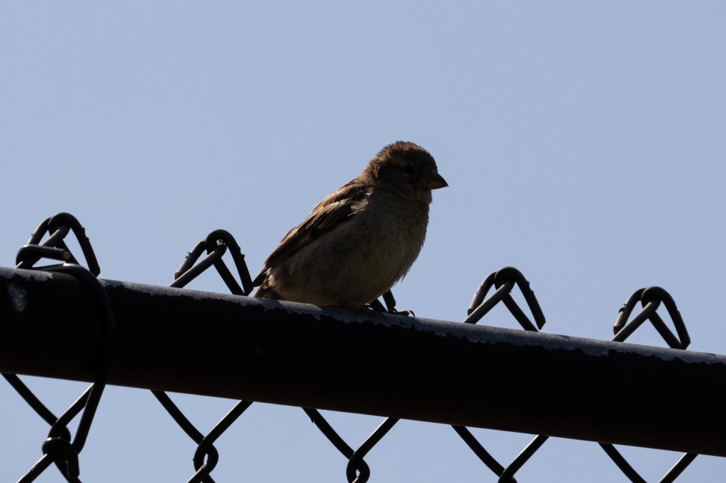 It helps that the female house sparrows and I have closely interacted since the summer of ’23. I frequently see them on the ballpark fences or cutely perching in the holes, watching me walk around with my camera with a curious head tilt. They don’t see me as a threat, and a few individuals will occasionally linger behind even when the rest of the group flies away.