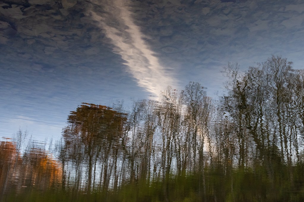 Something I experimented with this year is flipping photos upside-down to see how that changes the image’s realism. I took this picture by the river winding through the park. Oddly, only the trees’ reflections were rippling on the surface, leaving the sky and stones smooth.